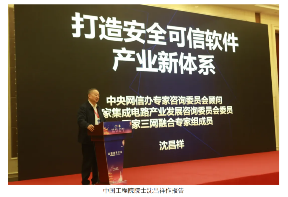 在大會報告環(huán)節(jié),沈昌祥院士作題為《打造安全可信軟件產(chǎn)業(yè)體系》的報告。提出了智能時代網(wǎng)絡(luò)安全面臨的嚴(yán)重威脅,指出了打造自主創(chuàng)新、安全可信的網(wǎng)絡(luò)安全產(chǎn)業(yè)的技術(shù)路徑。
