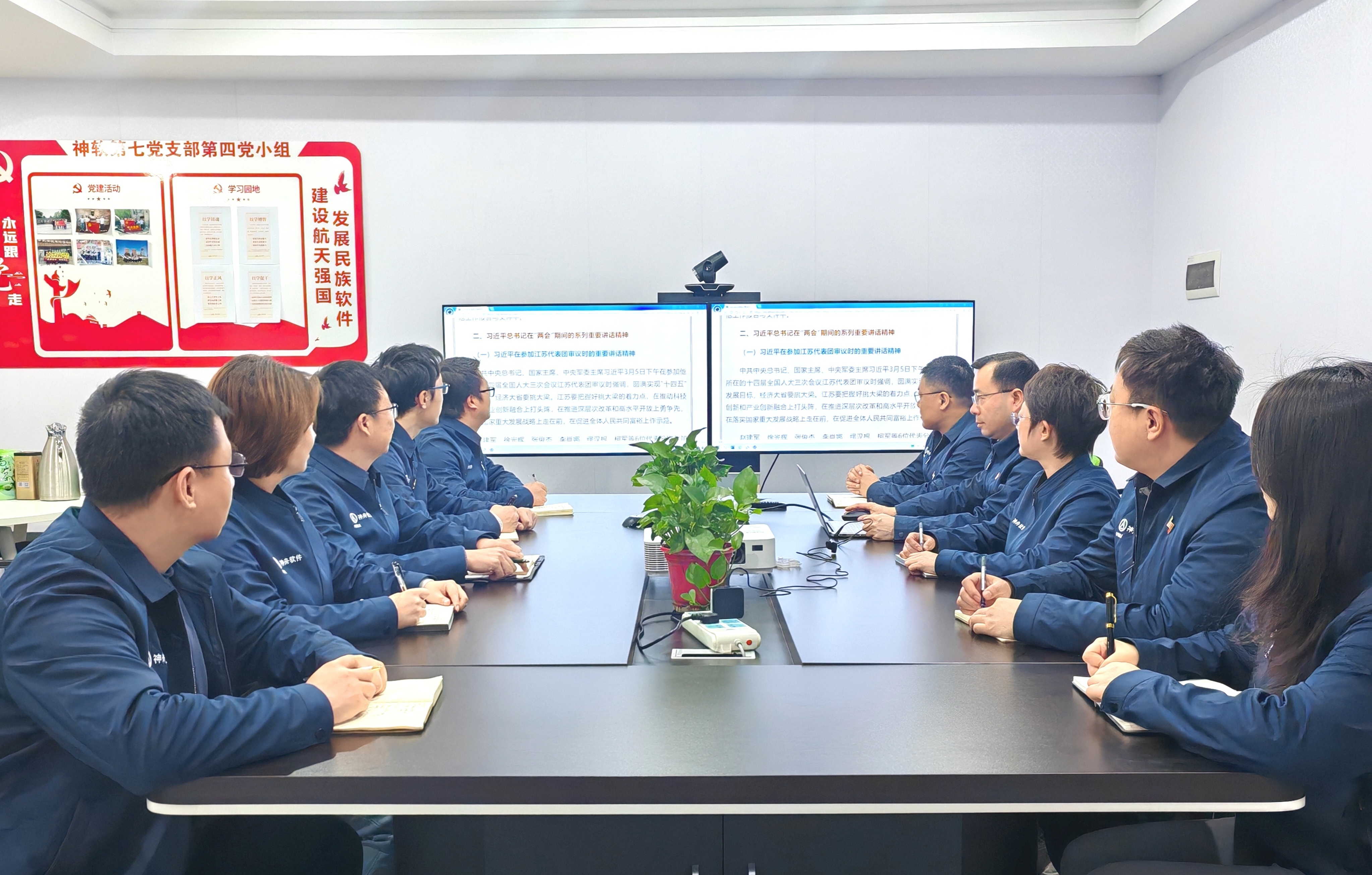 | 2025年全國兩會在北京勝利召開,這次會議聚焦科技創(chuàng)新、高質量發(fā)展等領域提出了一系列新思路、新舉措。神軟公司組織各黨支部開展全國兩會精神學習,深刻領會黨中央和習近平總書記治國理政新方略的思想精髓,把握政府工作報告中提出的重大戰(zhàn)略部署與關鍵政策導向,結合學習貫徹集團公司第九次工作會議精神,引導全體黨員干部將會議精神轉化為推動神軟公司高質量發(fā)展的實際行動,為實現“十四五”規(guī)劃目標任務圓滿收官注入強勁動力。 AVIDM產品研發(fā)部黨支部 AVIDM產品研發(fā)部黨支部組織黨員們共同學習了習近平總書記在全國兩會期間的重要講話精神,并結合集團公司第九次工作會關于系統重構三大主業(yè)、重點重塑六大能力的部署要求,明確將科技創(chuàng)新、數字化轉型、產業(yè)鏈協同作為落實全國兩會精神的核心方向。黨支部認為,要以“新質生產力”培育為抓手,加速人工智能等信息技術在航天智能制造領域的創(chuàng)新應用,推動業(yè)務模式轉型升級?。